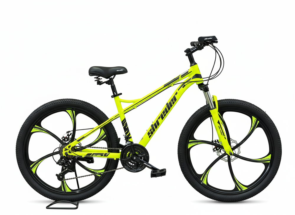 26 дюйма.Сталь рама , дисковые механические тормоза, 24 скорост, на промышленных подшипниках, вилка блок (регулируется), крылья,подножка в комплекте. Цвета разные